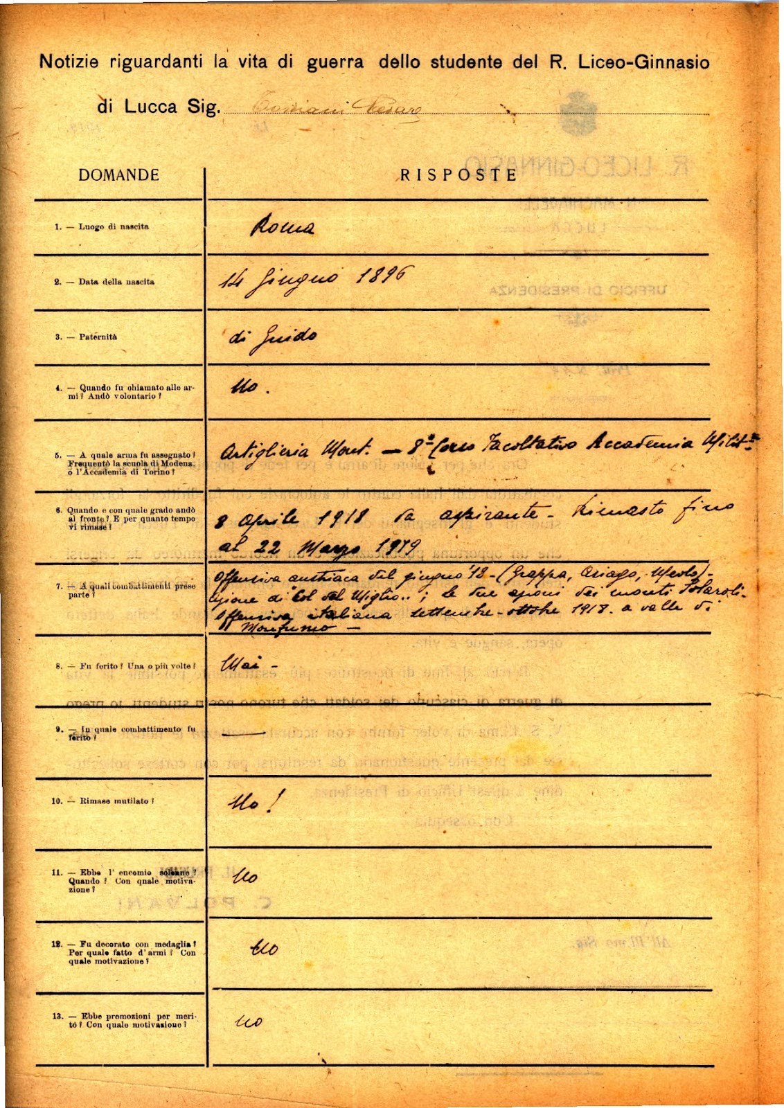 Gli altri studenti del Liceo Classico “N.Machiavelli”, morti durante la Prima guerra mondiale