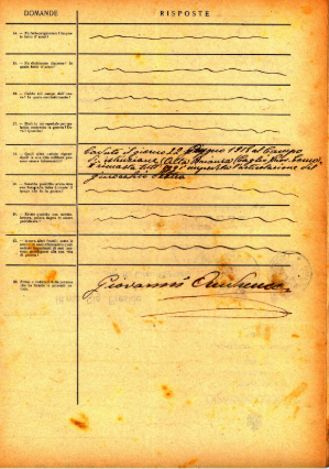 Caduto il giorno 22 Giugno 1918 al Campo di istruzione (Alta Brianza (Caglio Prov. Como). è rimasta tutt’oggi impedita l’articolazione del ginocchio destro.
