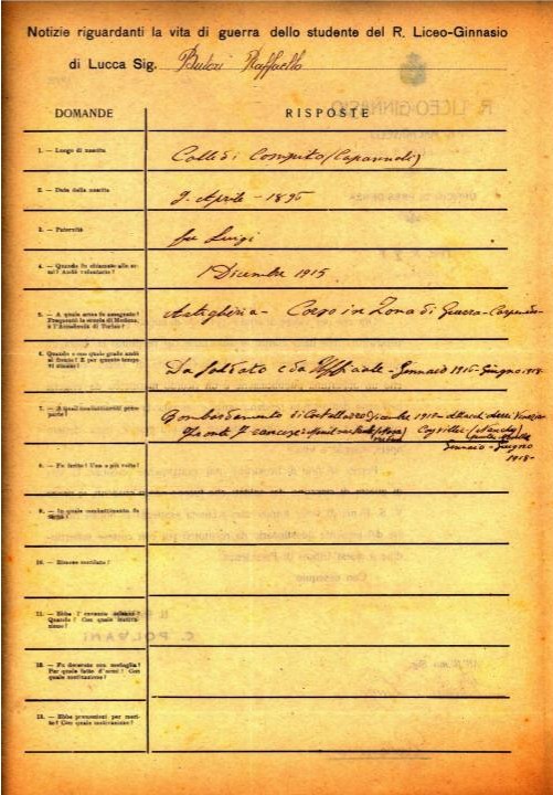 Gli altri studenti del Liceo Classico “N.Machiavelli”, morti durante la Prima guerra mondiale