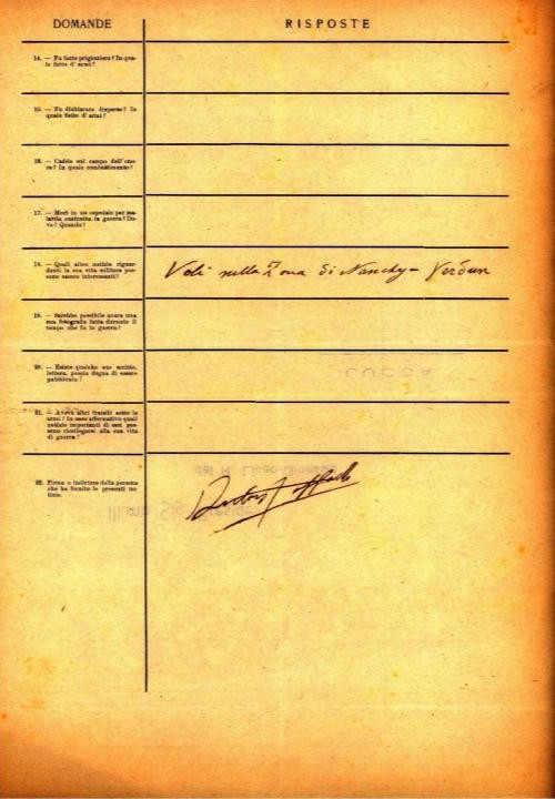 1. Aveva altri fratelli sotto le armi? In caso affermativo quali notizie importanti di essi possono ricollegarsi alla sua vita di guerra?