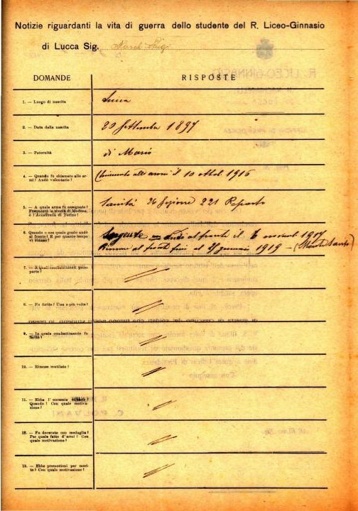 Gli altri studenti del Liceo Classico “N.Machiavelli”, morti durante la Prima guerra mondiale