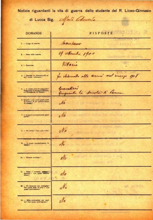 Gli altri studenti del Liceo Classico “N.Machiavelli”, morti durante la Prima guerra mondiale
