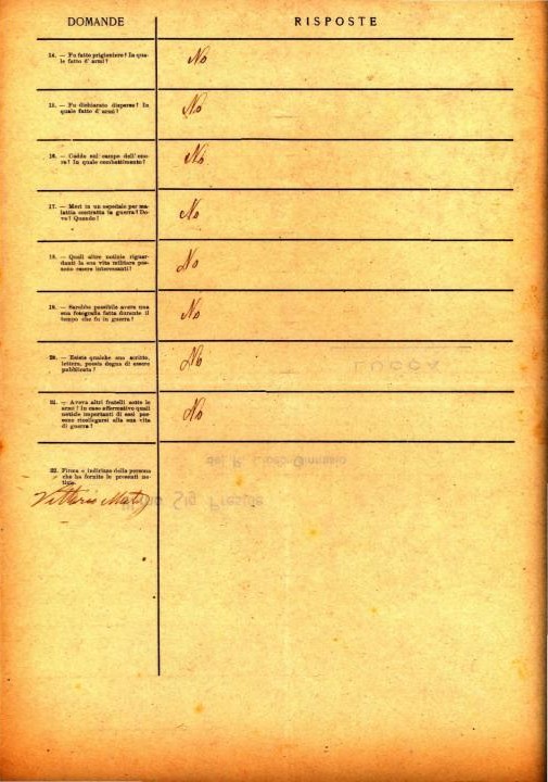 1. Aveva altri fratelli sotto le armi? In caso affermativo quali notizie importanti di essi possono ricollegarsi alla sua vita di guerra?