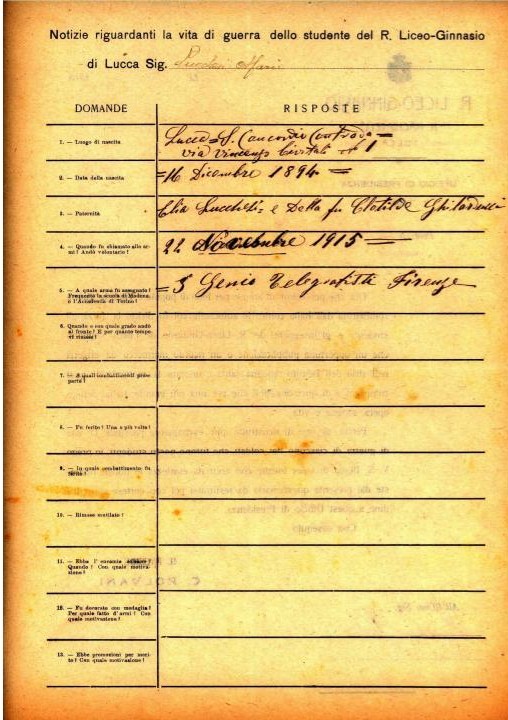Gli altri studenti del Liceo Classico “N.Machiavelli”, morti durante la Prima guerra mondiale