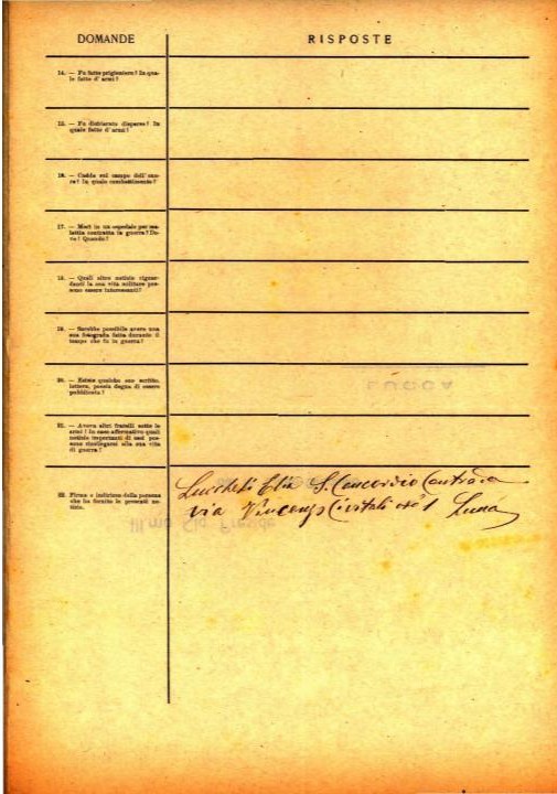 1. Aveva altri fratelli sotto le armi? In caso affermativo quali notizie importanti di essi possono ricollegarsi alla sua vita di guerra?