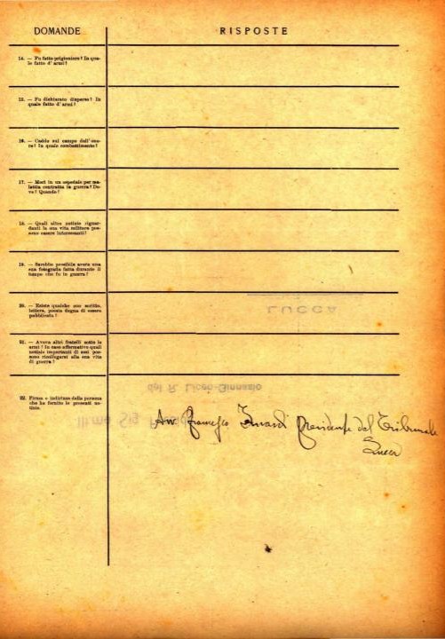 1. Sarebbe possibile avere una sua fotografia fatta durante il tempo che fu in guerra?