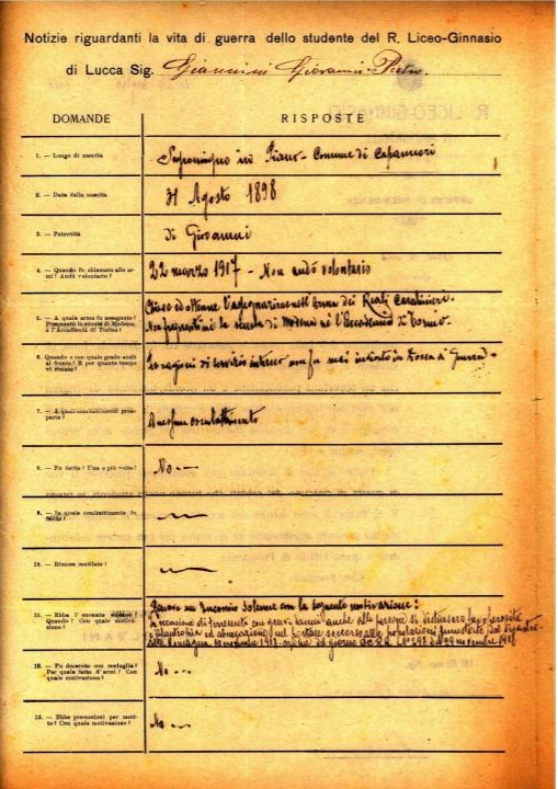 Gli altri studenti del Liceo Classico “N.Machiavelli”, morti durante la Prima guerra mondiale