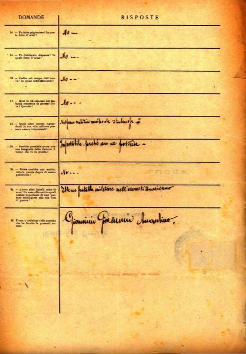 1. Aveva altri fratelli sotto le armi? In caso affermativo quali notizie importanti di essi possono ricollegarsi alla sua vita di guerra?