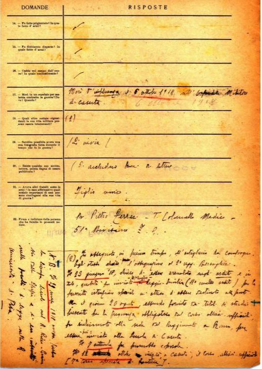1. Aveva altri fratelli sotto le armi? In caso affermativo quali notizie importanti di essi possono ricollegarsi alla sua vita di guerra?