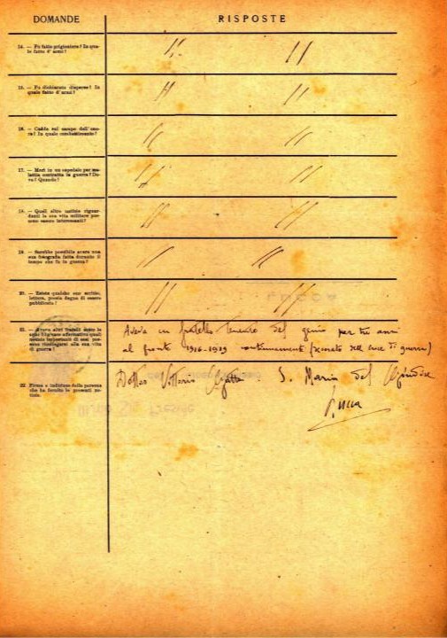 1. Aveva altri fratelli sotto le armi? In caso affermativo quali notizie importanti di essi possono ricollegarsi alla sua vita di guerra?